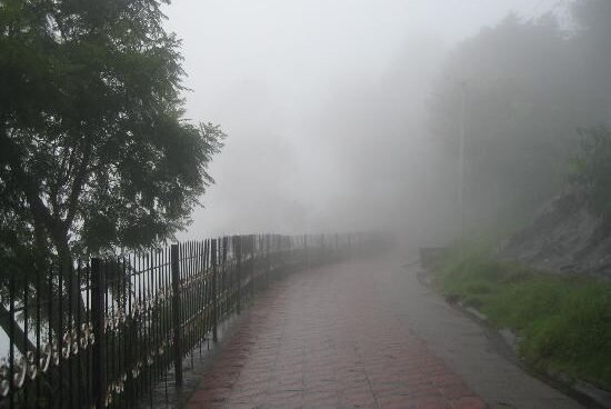 A serene viewpoint surrounded by dense forests and misty hills, offering peaceful valley views and a quiet escape away from crowded tourist spots.