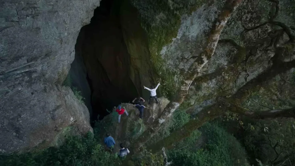 A mysterious forested area known for its deep caverns, dense pine trees, and cinematic fame, offering an eerie yet fascinating natural atmosphere.
