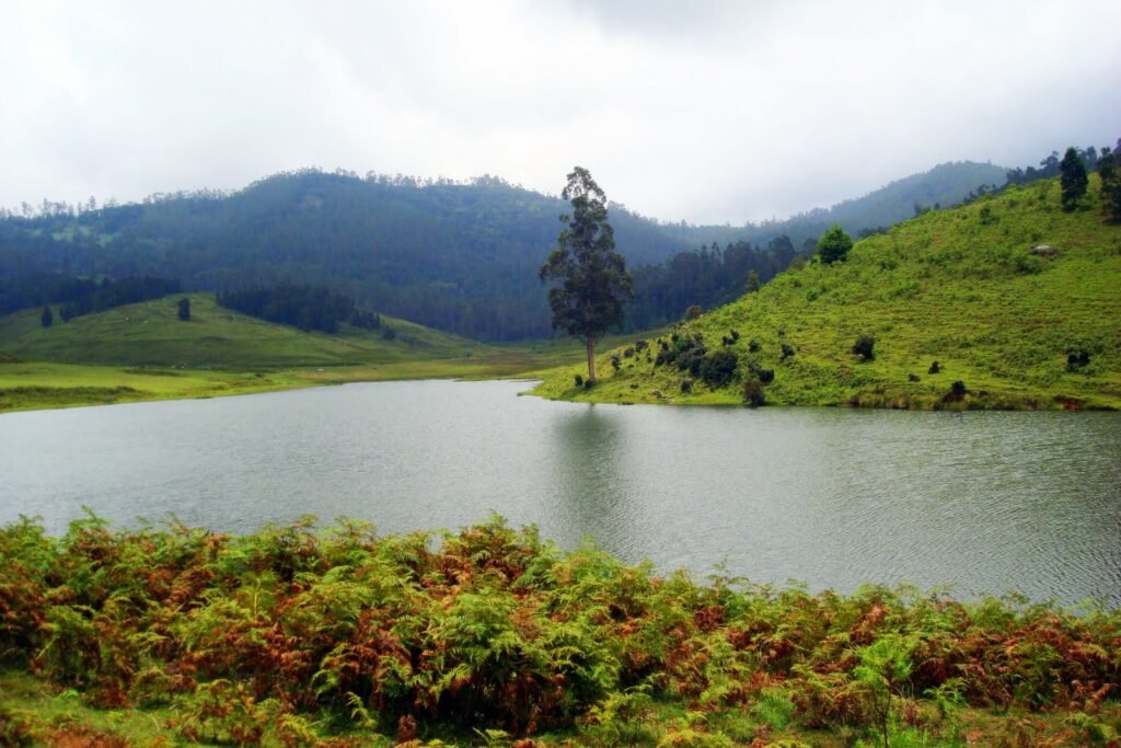 A beautiful star-shaped lake perfect for boating, cycling, and peaceful evening walks around the misty hills.